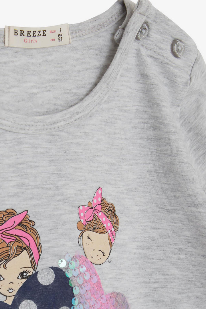 BRE Breeze Girl Child Long Sleeve T-Shirt Sequined Girl Printed 2-6 Years, Light Gray Melange - Cartagena