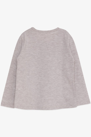 BRE Breeze Girl Child Long Sleeve T-Shirt Sequined Girl Printed 3-8 Years, Beige Melange - Herne