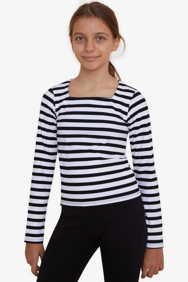 BRE Breeze Girl Child Long Sleeve T-Shirt Striped Square Neck 94 Years, Mixed Color - Saint-Martin-d’Hères