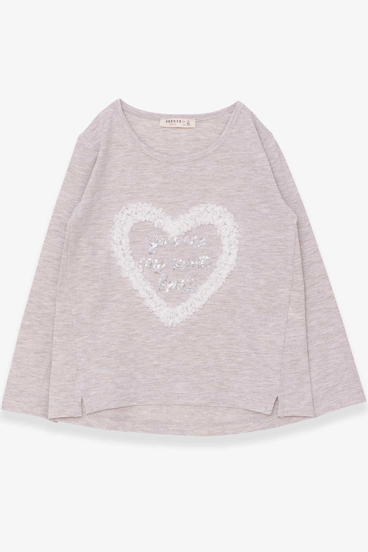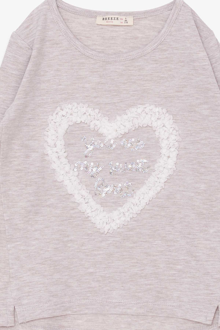 BRE Breeze Girl Child Long Sleeve T-Shirt with Glitter Heart Print, 50 Years, Beige Melange - Năvodari