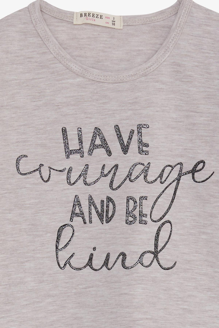 BRE Breeze Girl Child Long Sleeve T-Shirt with Glittery Printed Text 3-7 Years, Beige Melange - Túxpam de Rodríguez Cano