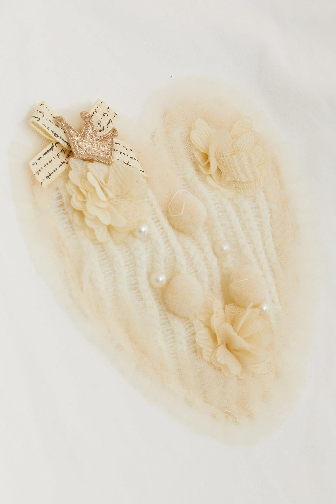 BRE Breeze Girl Child Long Sleeve T-Shirt with Pompons and Pearls, 1-4 Years, Ecru - Córdoba