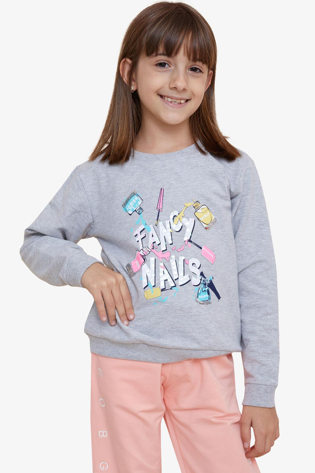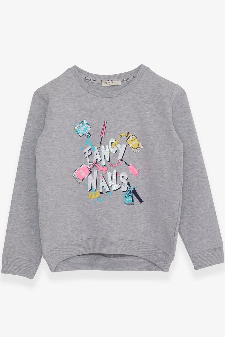 BRE Breeze Girl Child Sweatshirt Colorful Nail Polish Printed 62 Years, Gray Melange - Osnabrück