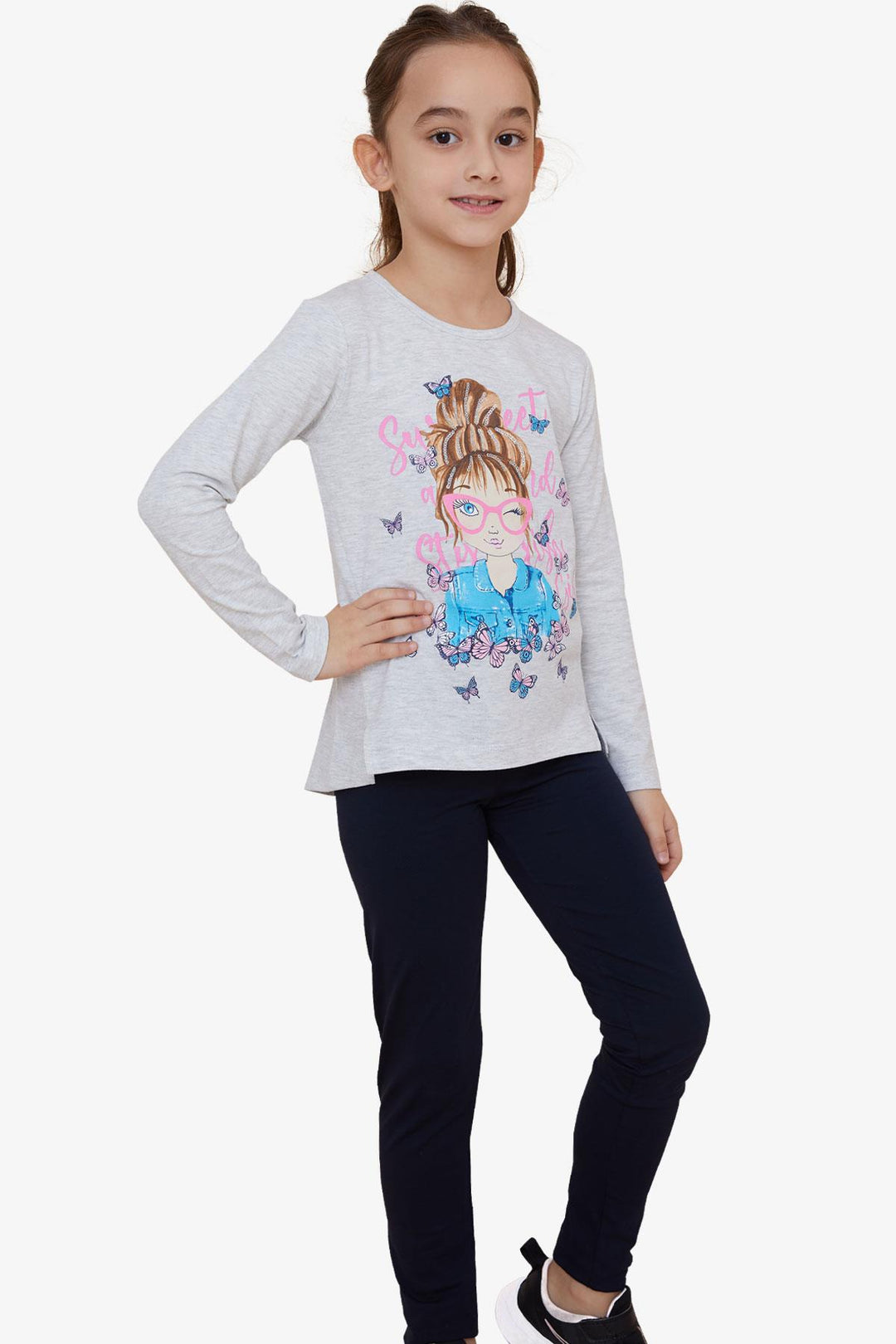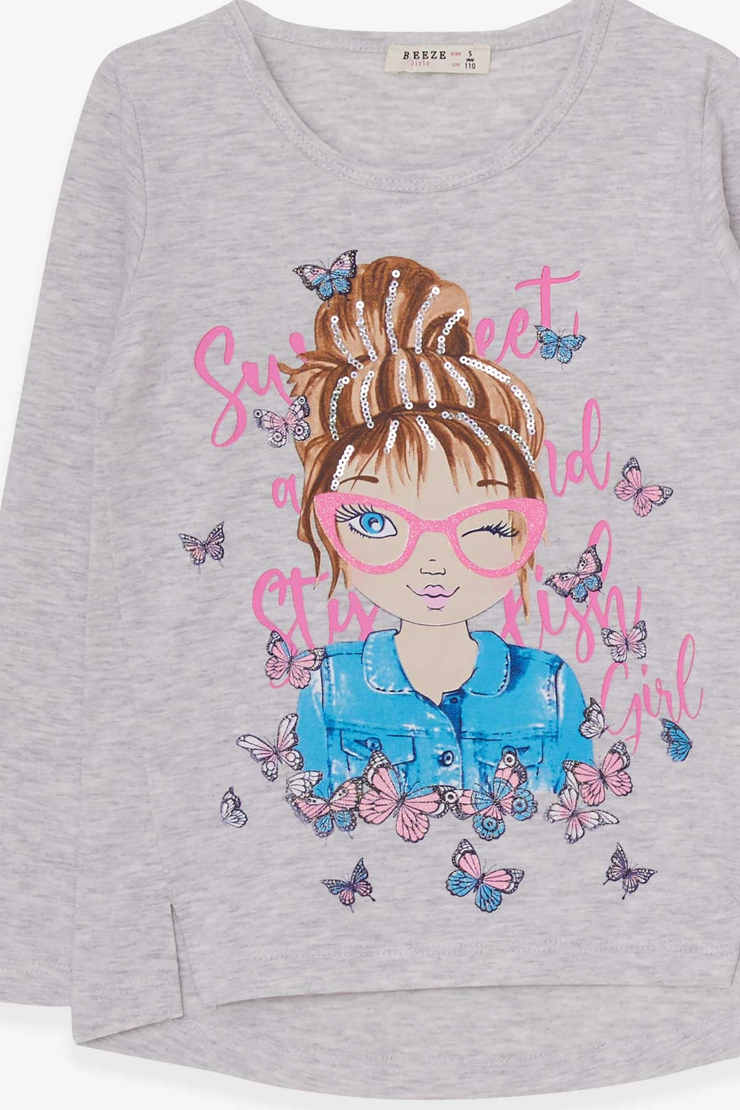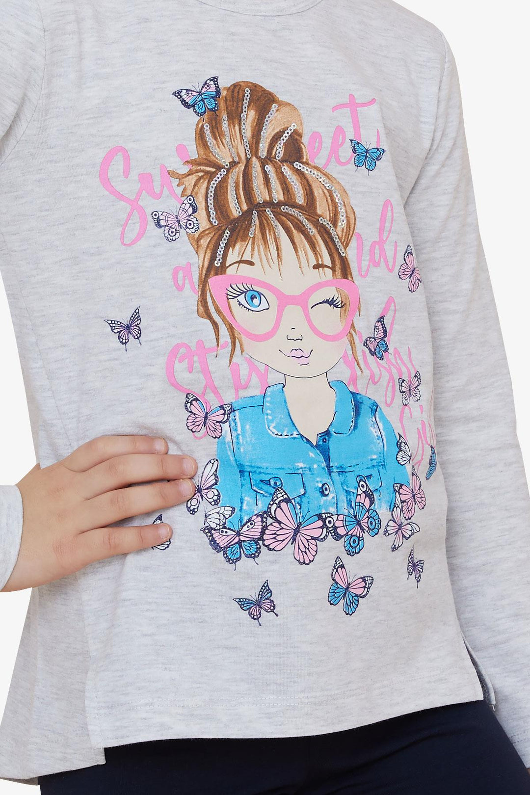 BRE Breeze Girl Child Tracksuit Butterfly Printed Girl 50 Years, Light Grey Melange - Zaventem