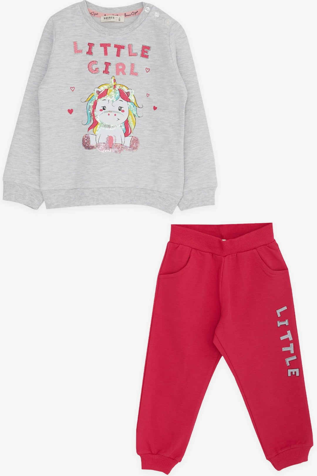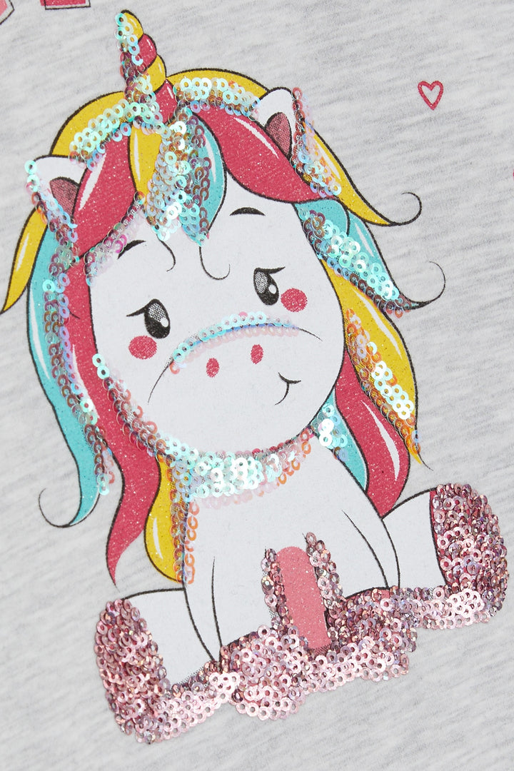 BRE Breeze Girl Child Tracksuit Unicorn Printed 1-4 Years, Light Grey Melange - Tivoli