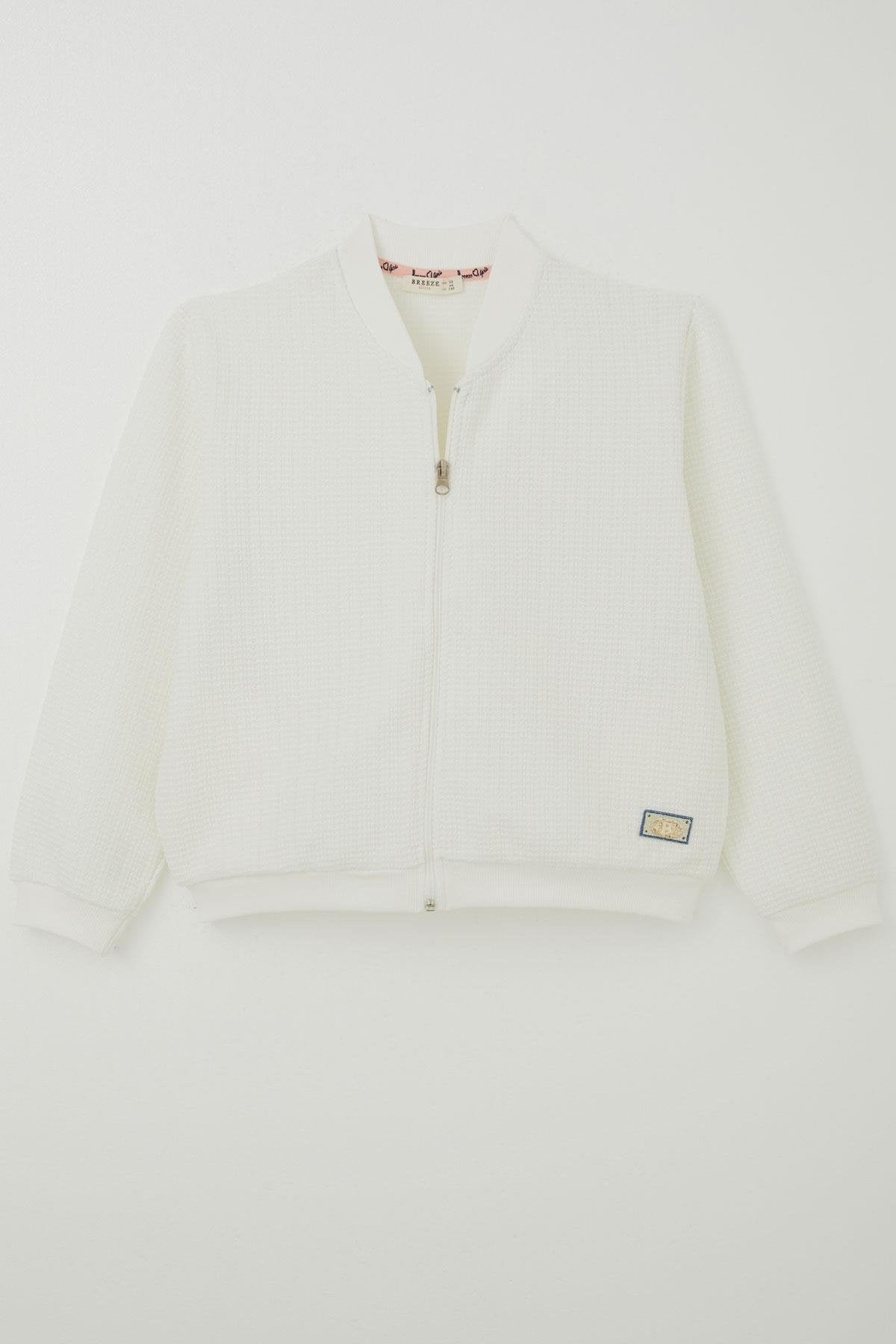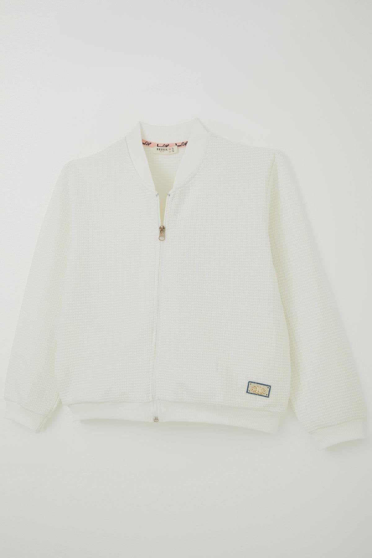 BRE Breeze Girl's Hoodie with Zipper and Arm Detail, 94 Years, Ecru - Stoke-on-Trent