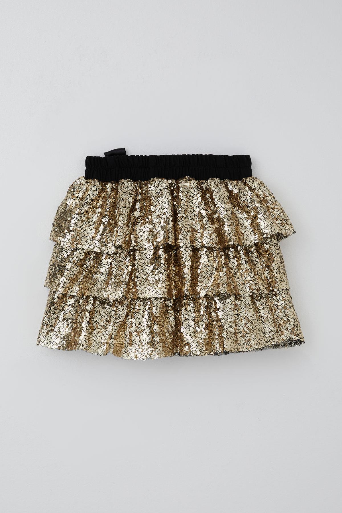 BRE Breeze Girl's Layered Skirt with Sequins and Bow Accessories, 50 Years, Gold - Hürth