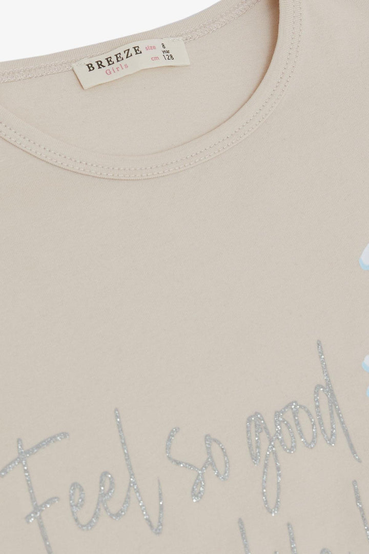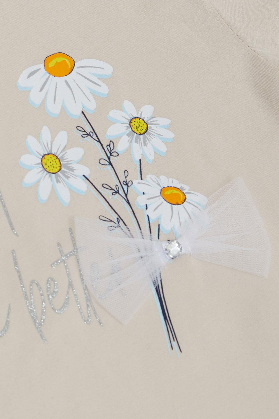 BRE Breeze Girl's Legging Set Flower & Text Printed with Bow, Beige, 50 Years - Gómez Palacio