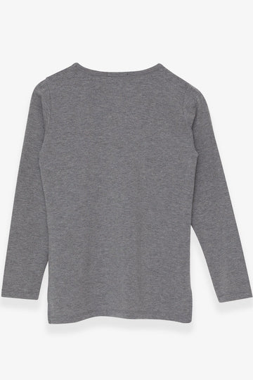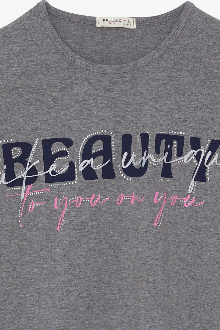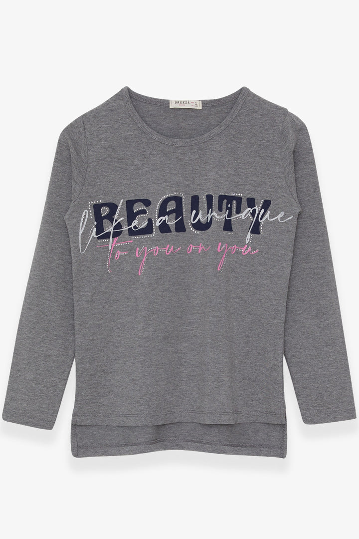 BRE Breeze Girl's Long Sleeve T-Shirt with Stone Printed Text 106 Years, Dark Grey Melange - Anderlecht