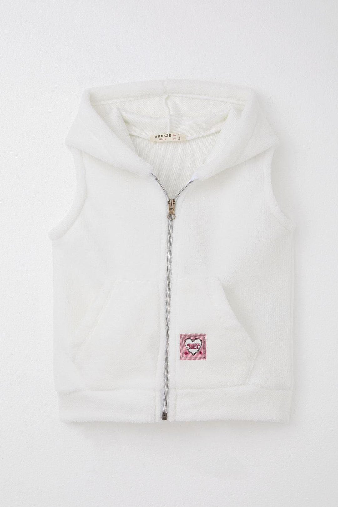 BRE Breeze Girl's Polar Vest with Heart Emblem Hooded Pocketed 3-8 Years, White - Watsonville