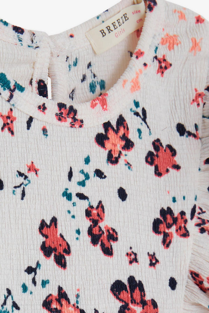 BRE Breeze Girl's Short Sleeve Dress with Flower Patterned Frilly Sleeves and Ruffle Trim, 3-8 Years, Ecru - Năvodari