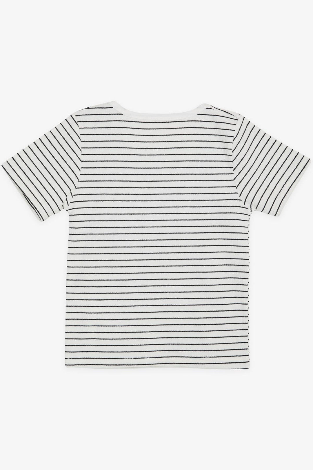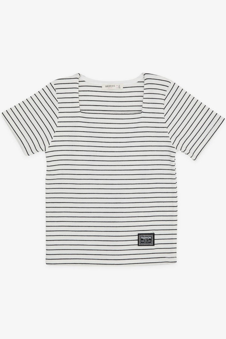 BRE Breeze Girl's Striped Square Neck T-shirt with Logo, 94 Years, Ecru - Jonesboro
