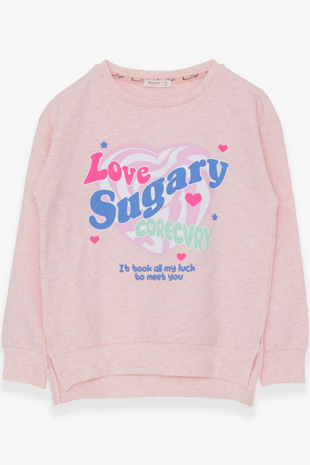BRE Breeze Girl's Sweatshirt with Printed Writing and Slit, 94 Years, Salmon Melange - Pinto