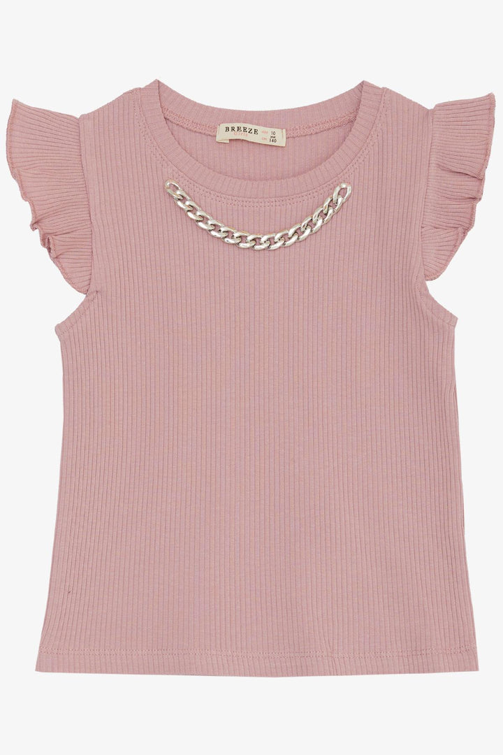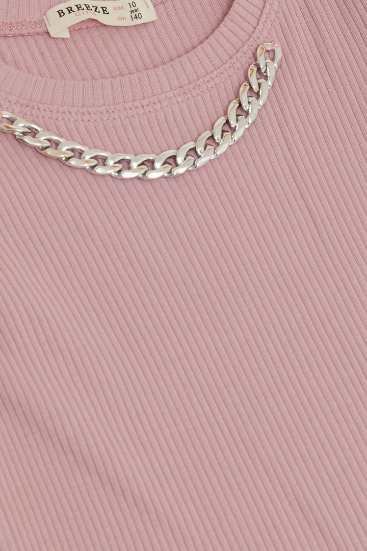 BRE Breeze Girl's T-shirt with Belt Collar Chain Accessory, 94 Years, Rose Pink - Hamburg
