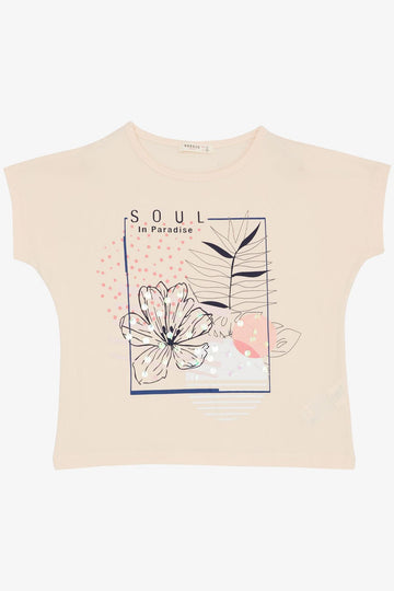 BRE Breeze Girl's T-shirt with Flower Print Sequins 106 Years, Powder - Pioltello