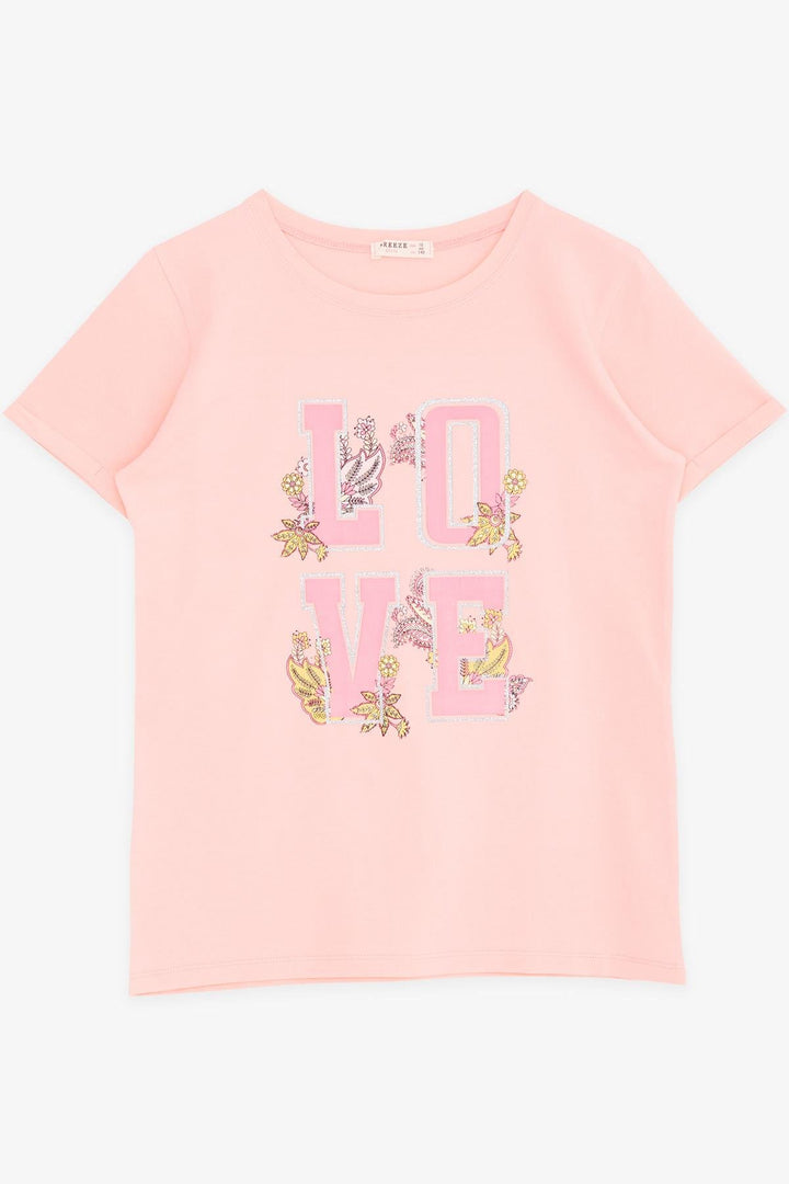 BRE Breeze Girl's T-shirt with Glittery Text Flower Print 106 Years, Salmon - Wilmington