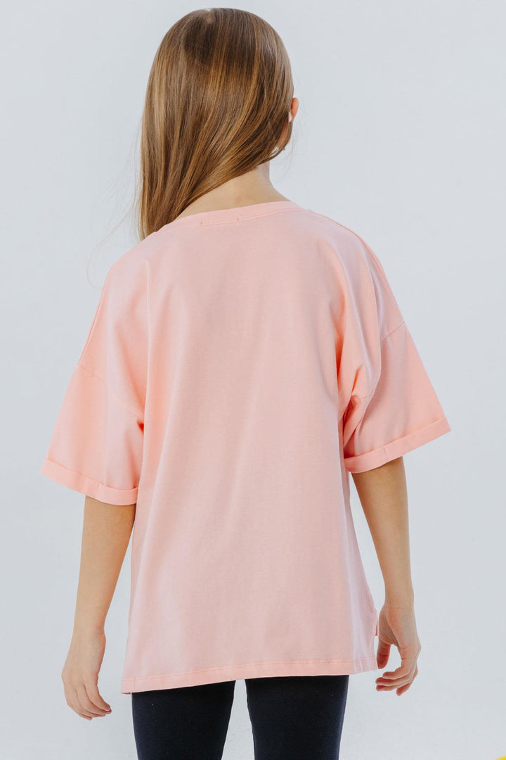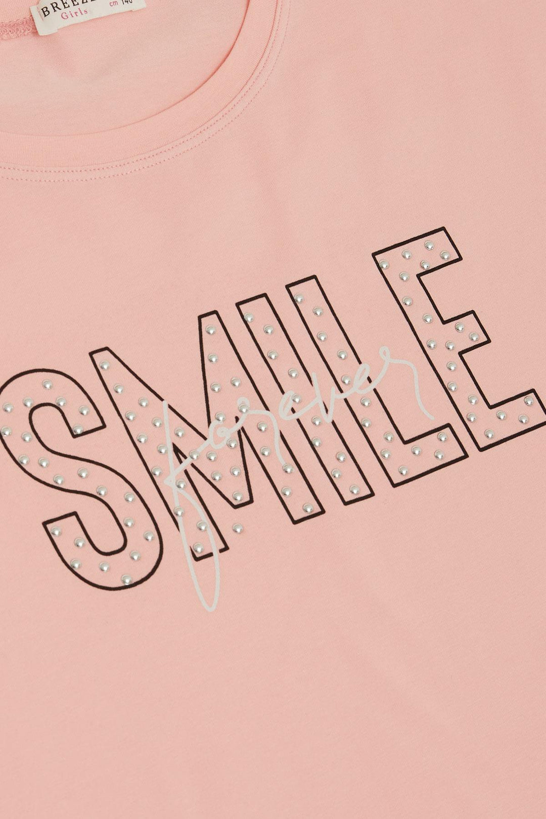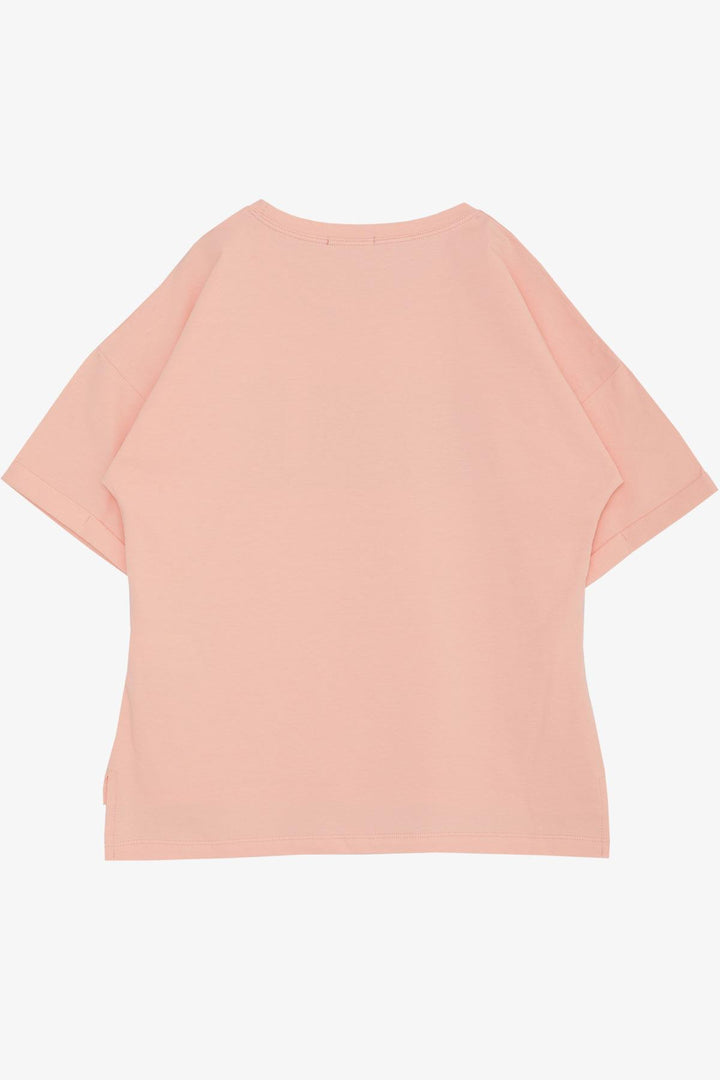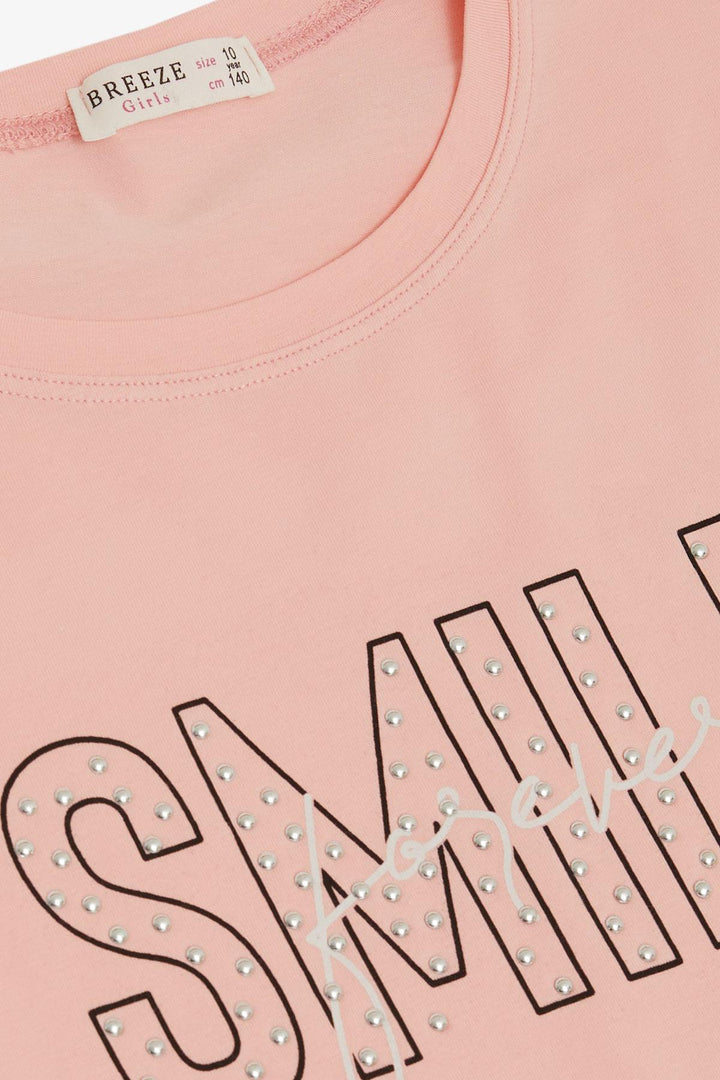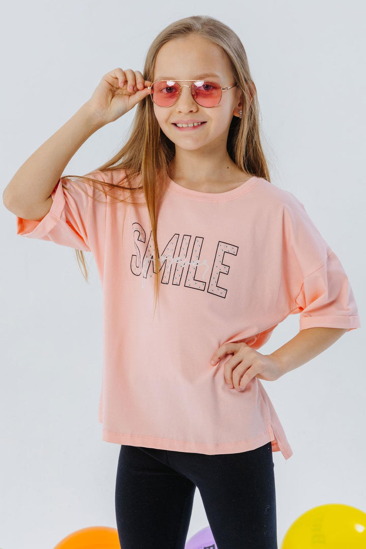 BRE Breeze Girl's T-Shirt with Smile Print and Stones, 96 Years, Salmon - West Orange