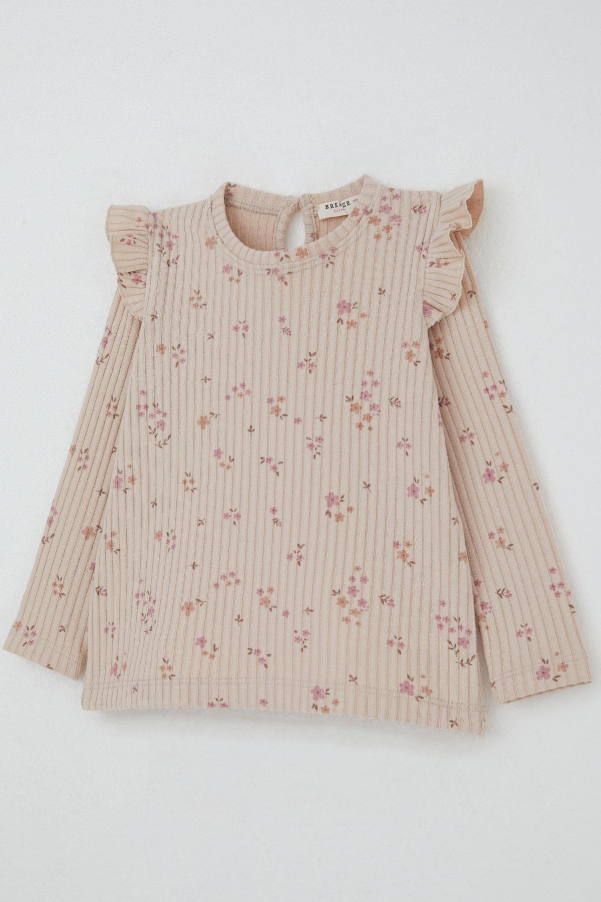 BRE Breeze Girl Child Leggings Set with Flower Patterned Ruffled Shoulder Detail, 2-6 Years, Powder - Kissimmee