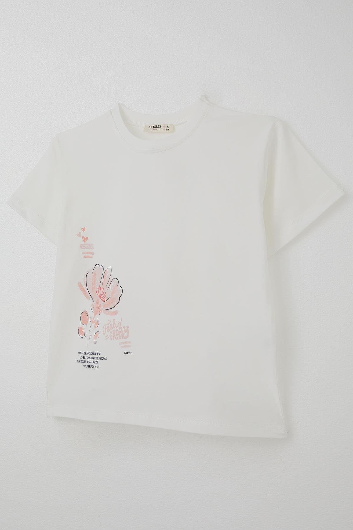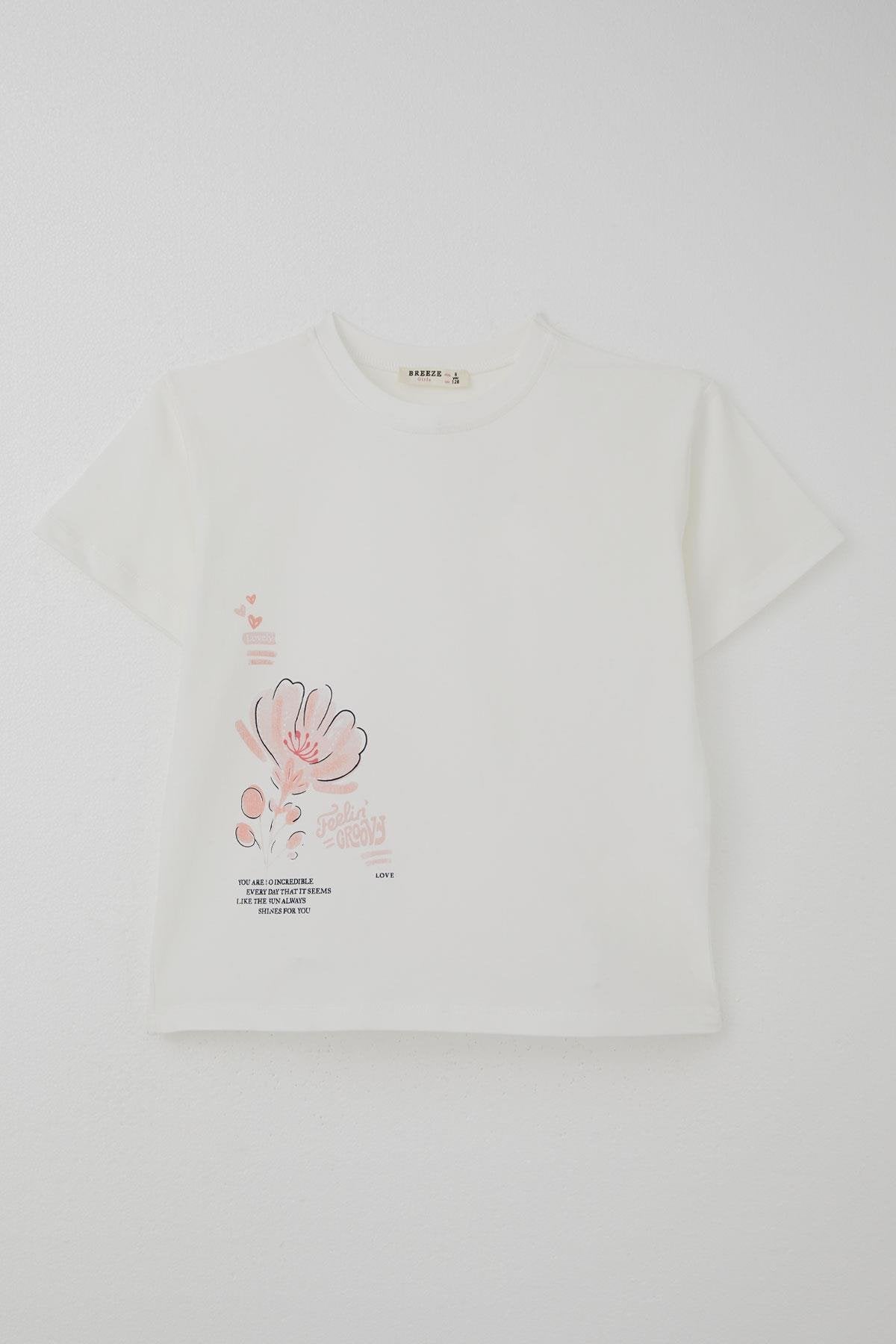 BRE Breeze Girl Child Shorts Set Love Themed Flower Printed 62 Years, Ecru - Durham