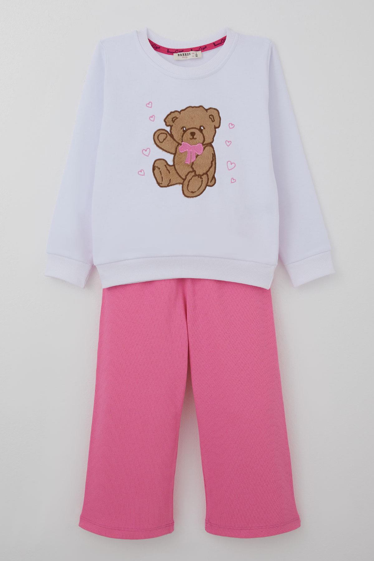BRE Breeze Girl Child Tracksuit Love Themed Happy Bear Embroidered 3-7 Years, White - Segrate