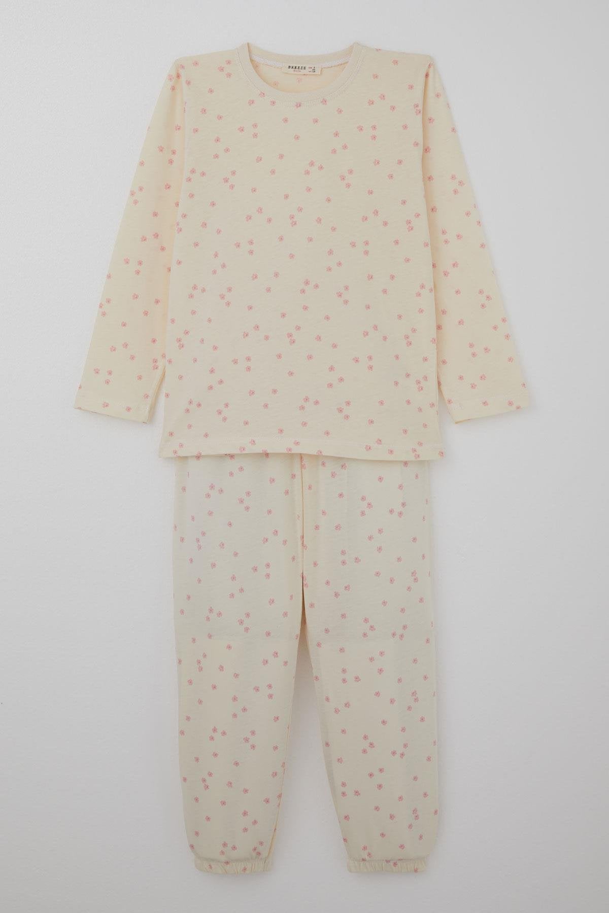 BRE Breeze Girl's Pajama Set Flower Patterned 4-8 Years, Cream - Visalia