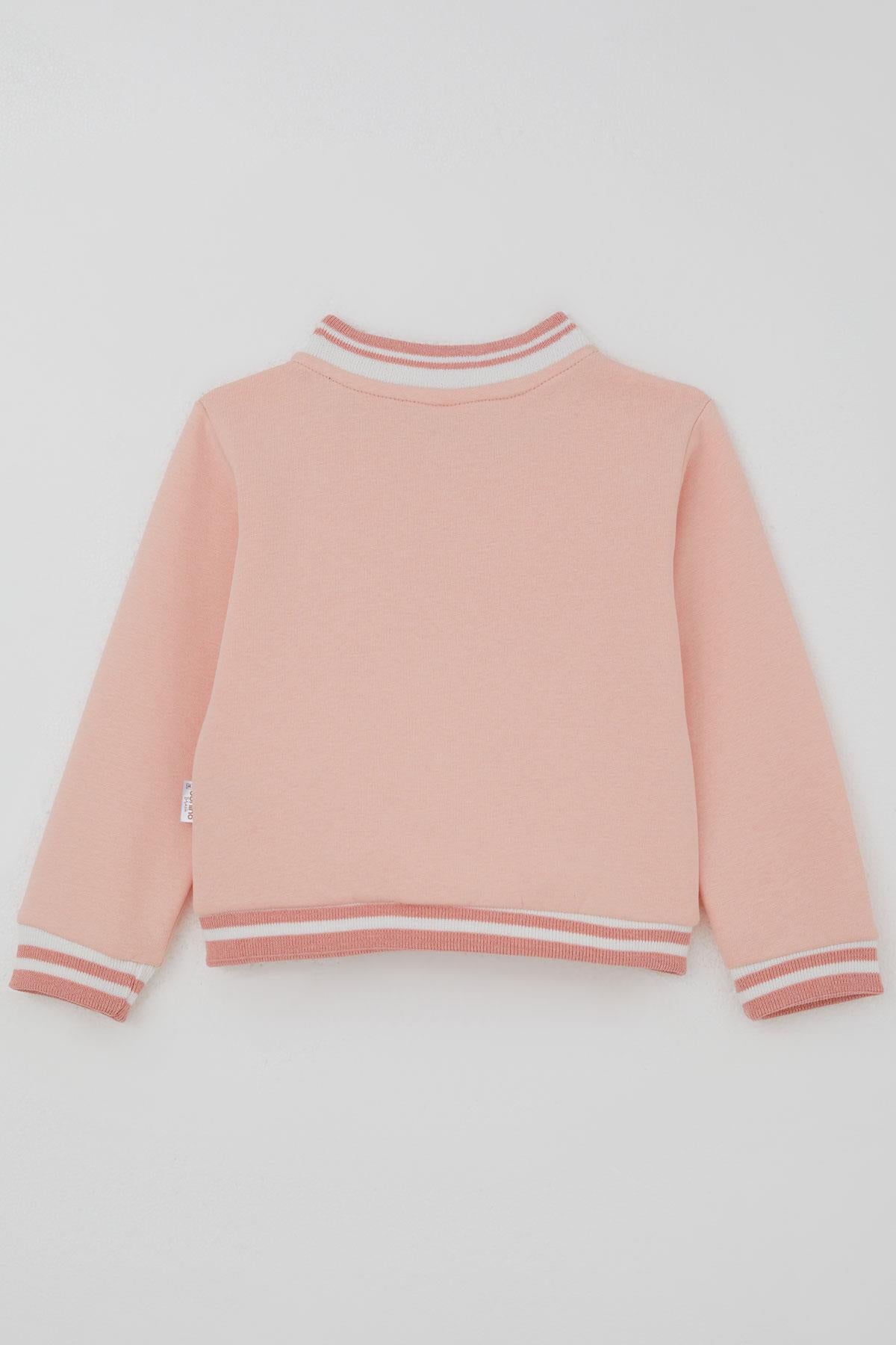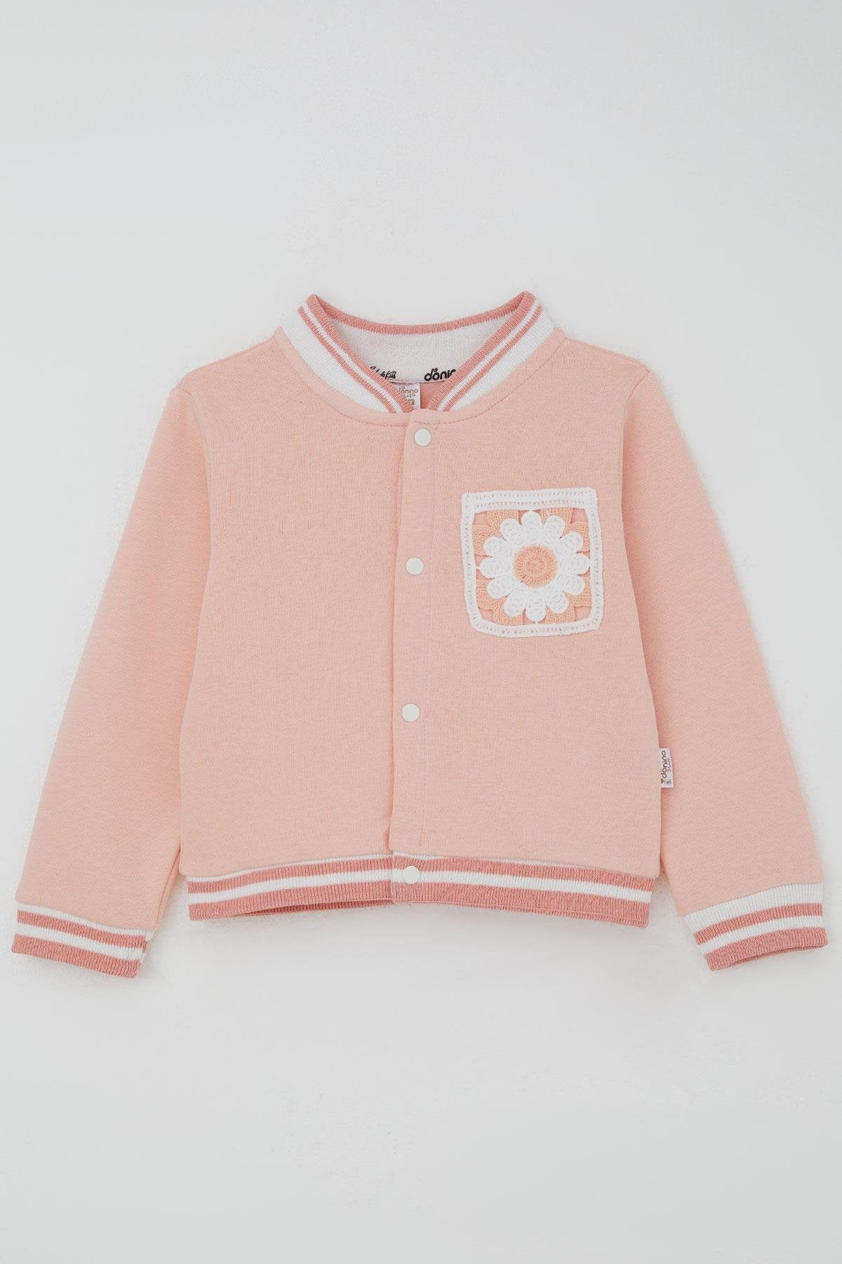 BRE Donino Girl's Tracksuit with Flower Knitted Pocket Detail Snap Fastener 2-5 Years, Salmon - Roseville