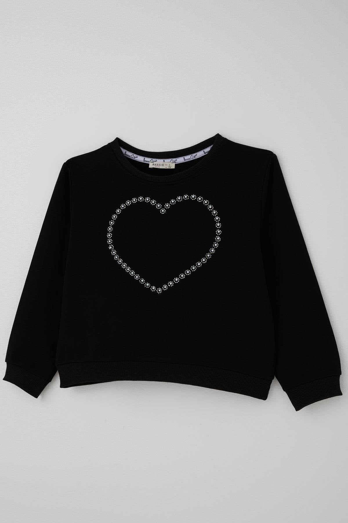 BRE Breeze Girl's Sweatshirt with Stone Heart Print, 72 Years, Black - Merthyr Tudful