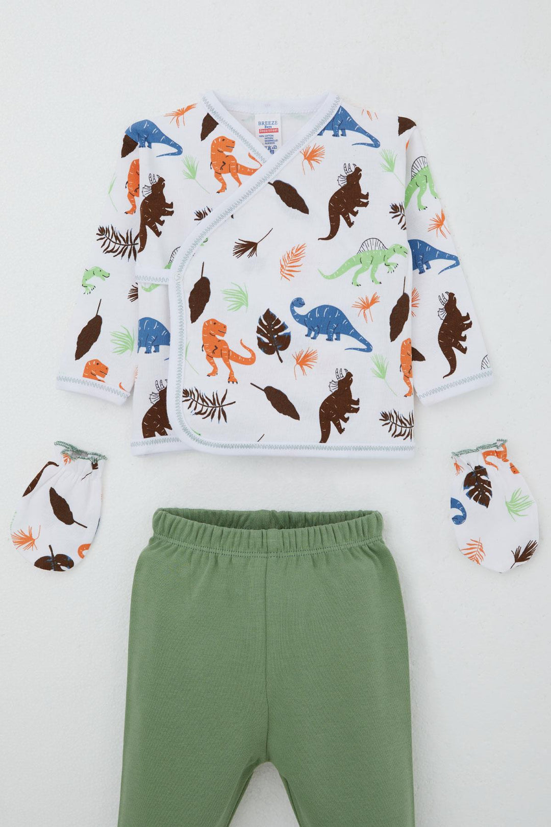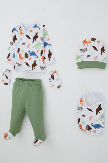 BRE Breeze Baby Boy Hospital Outfit 5 Piece Dinosaur Kingdom 0-3 Months, White - Doral