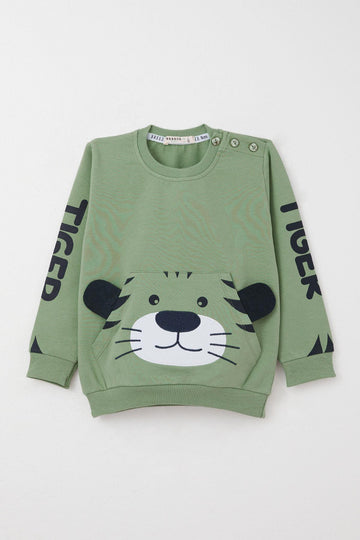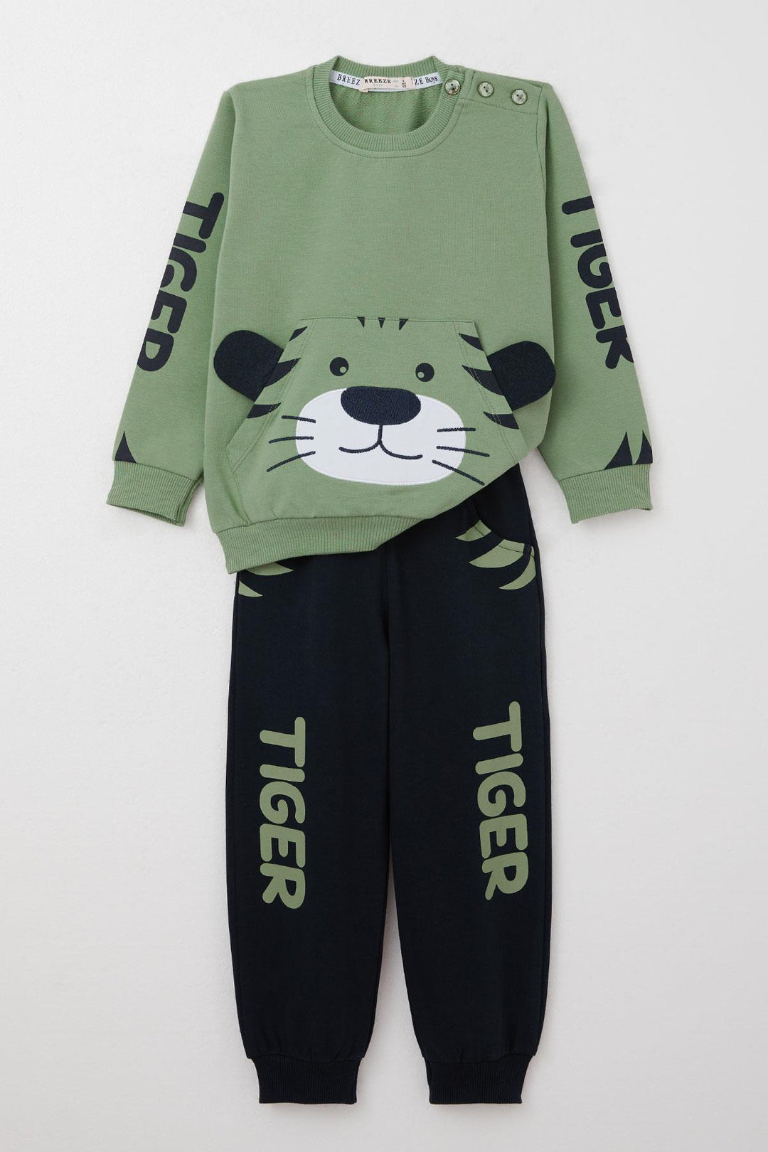 BRE Breeze Boys' Sweat Suit Set with Moving Tiger Embroidery on Ears, 1-4 Years, Mint Green - Delmenhorst