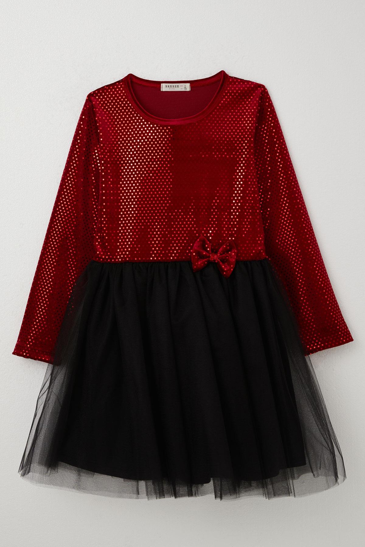 BRE Breeze Kız Çocuk Uzun Kollu Elbise Kadife Pullu 50 Yaş, Kırmızı - Corsico
