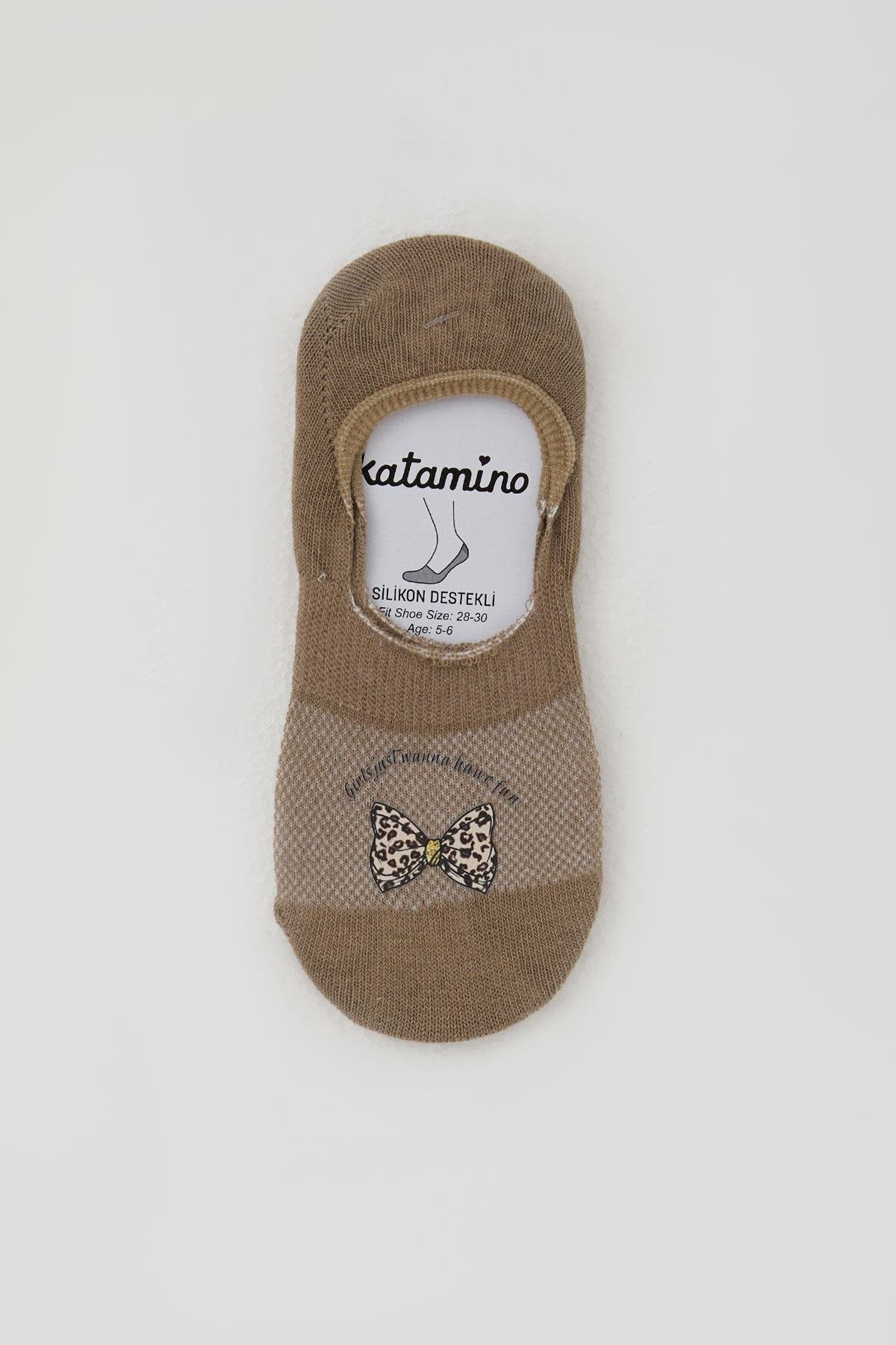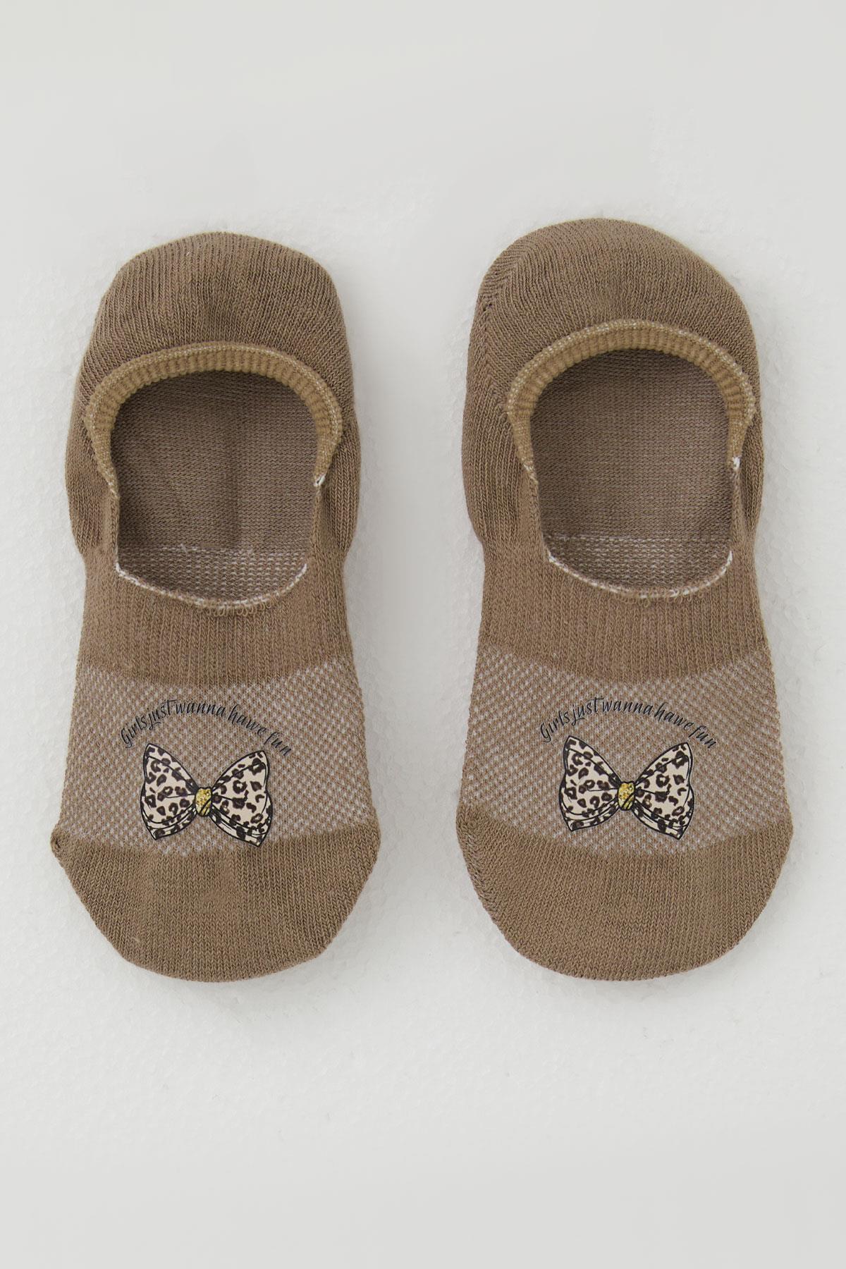 BRE Katamino Kız Çocuk Babet Çorap Fiyonk Baskılı 54 Yaş, Kahverengi - Oakton