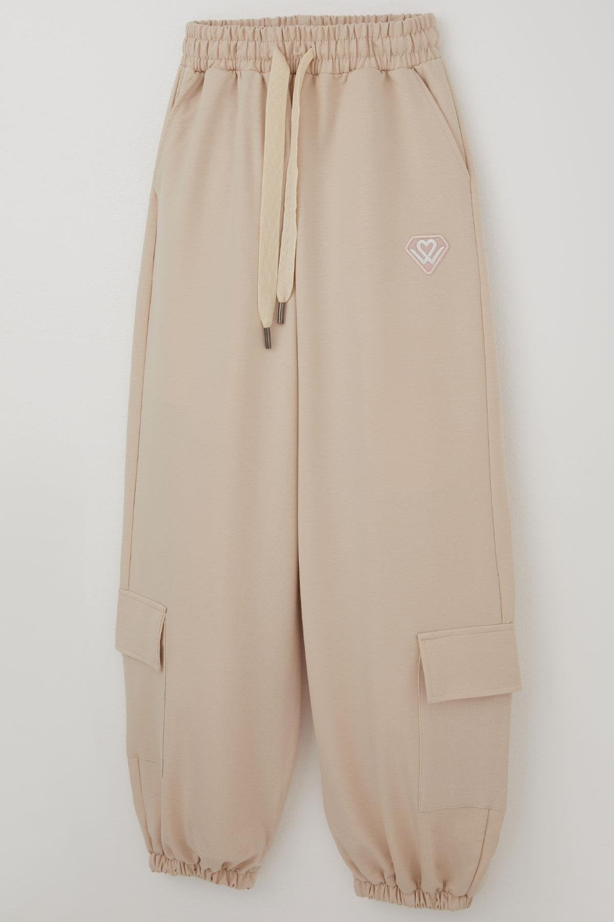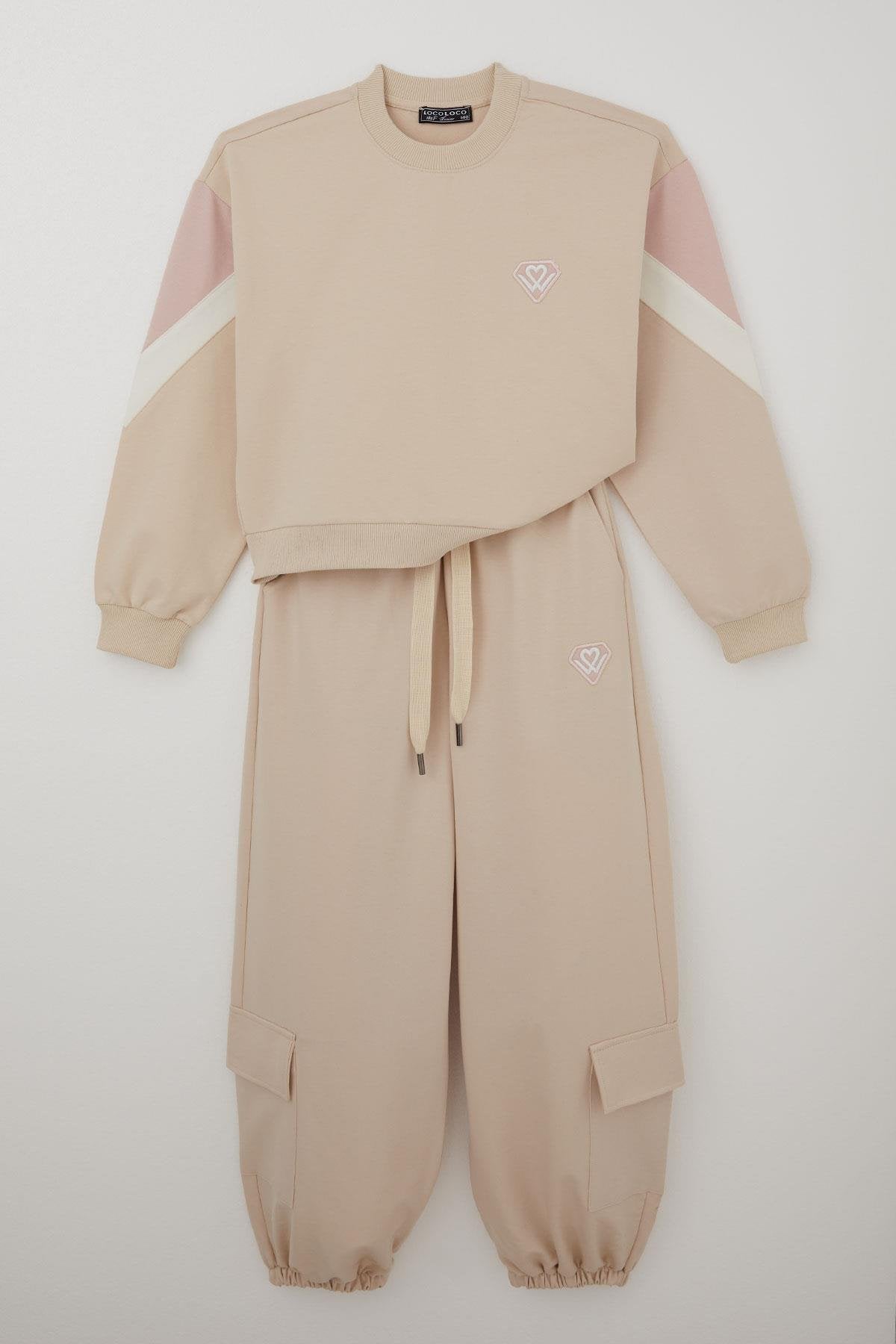 BRE Locoloco Kız Çocuk Eşofman Takımı Armalı Kargo Cepli Beli Paçası Lastikli 94 Yaş, Krem - Loulé