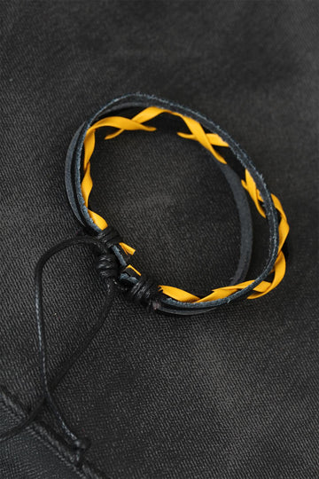 You will stand out with your stylish look with the Yellow Leather Black Color Knitted Leather Men's Bracelet.