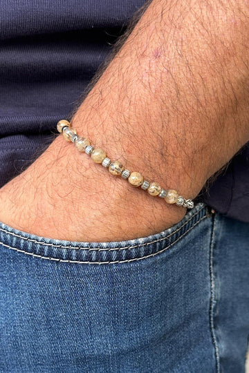 FRNCH 316L Steel Italian Model Citrine Natural Stone Brown Men's Bracelet; Material: 316L Steel Stone: Citrine Color: Brown Size: One Size; Sent in FRNCH Box; It is recommended to keep away from cosmetics, perfume, and cleaning products.