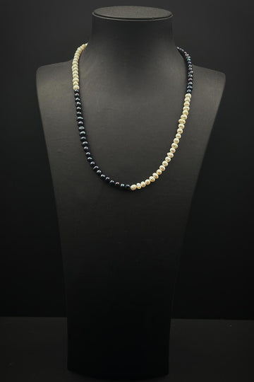 FRNCH 925 Sterling Silver and Pearl Stone Navy-White Color Men's Necklace; Material: 925 Sterling Silver and Pearl Color: Navy-White Size: One Size; Sent in FRNCH Box; It is recommended to keep away from cosmetics, perfume, and cleaning products.