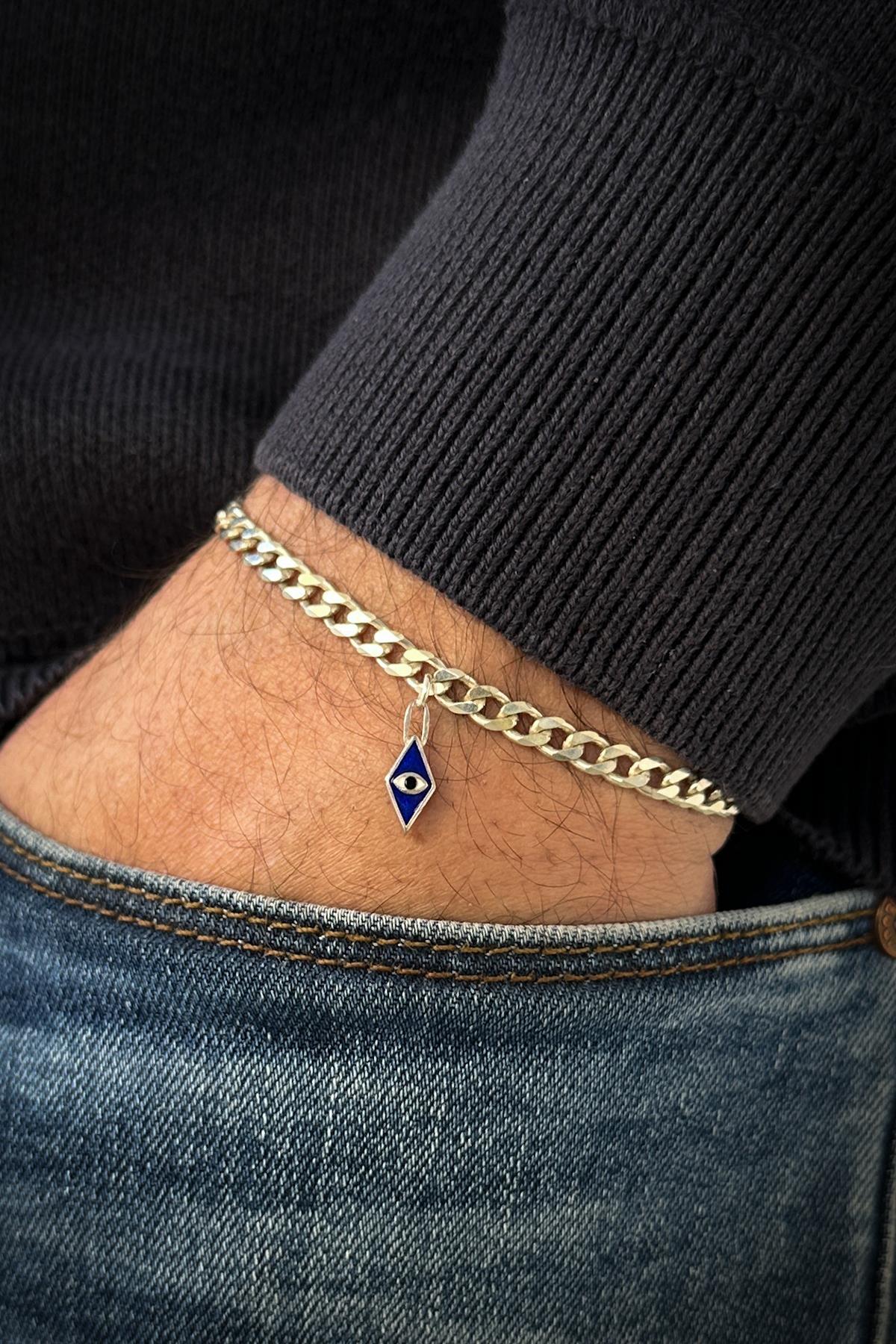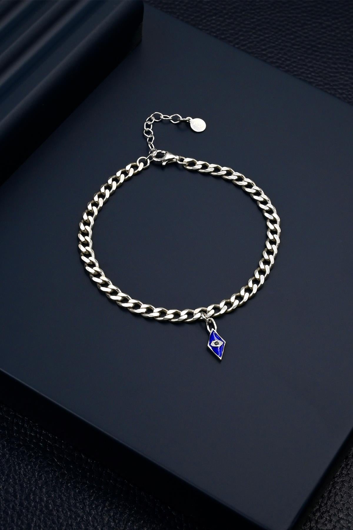 FRNCH 925 Sterling Silver Evil Eye Figured Silver Color Gourmet Men's Bracelet; Material: 925 Sterling Silver Color: Silver-Navy Blue Figure: Evil Eye; Sent in FRNCH Box; It is recommended to keep away from cosmetics, perfume, and cleaning products.
