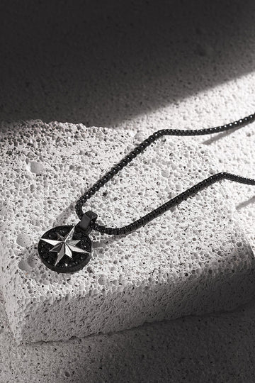 NVM FRNCH Compass Figured Zircon Stone Matte Black-Silver Color Men's Necklace FRJ30415-515-B2A - Jackson