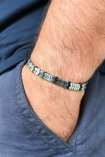 NVM NOON Hematite Stone Silver Color Adjustable Men's Bracelet NN1444 - Kokomo
