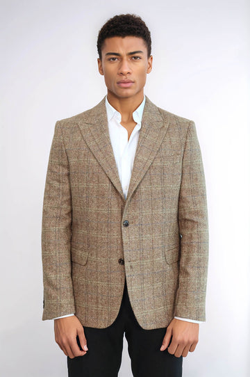 WSS Herringbone Slim Fit Wool Tan Men Blazer - Isla