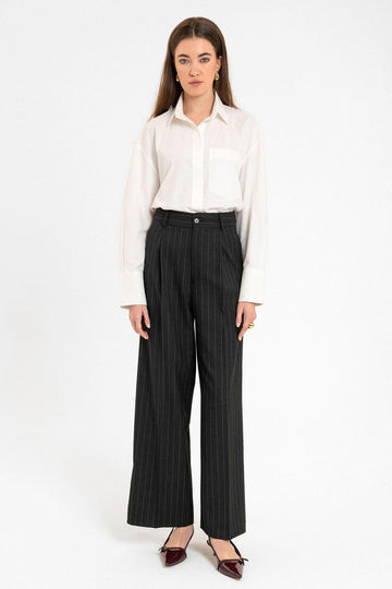 ANT Antioch Black High Waist Pleated Striped Pants - Thessaloníki
