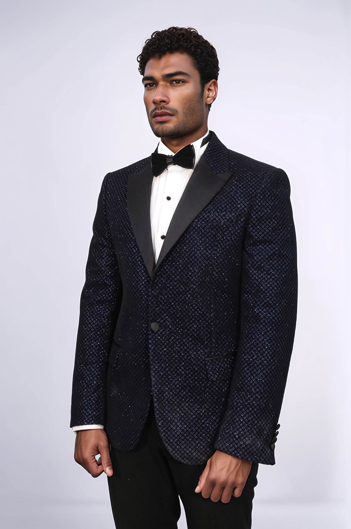 WSS Black Patterned Over Navy Blue Men Party Blazer - Ciudad General Escobedo
