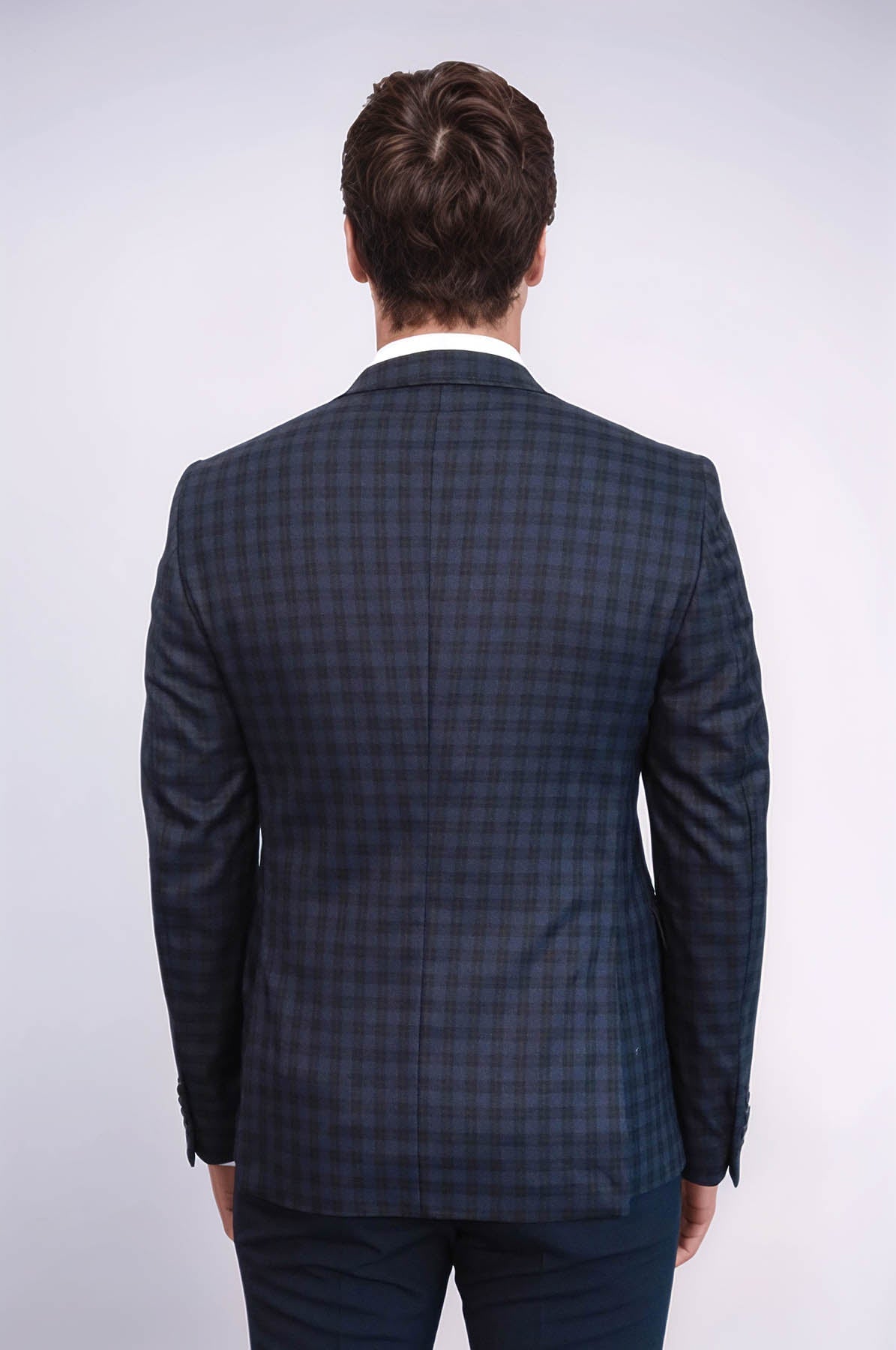 Expertly crafted with a stylish plaid pattern, this navy blue jacket from Wessi is the epitome of sophistication. Complete with a handkerchief, it exudes a polished, professional look. Elevate your wardrobe with this versatile and timeless piece.