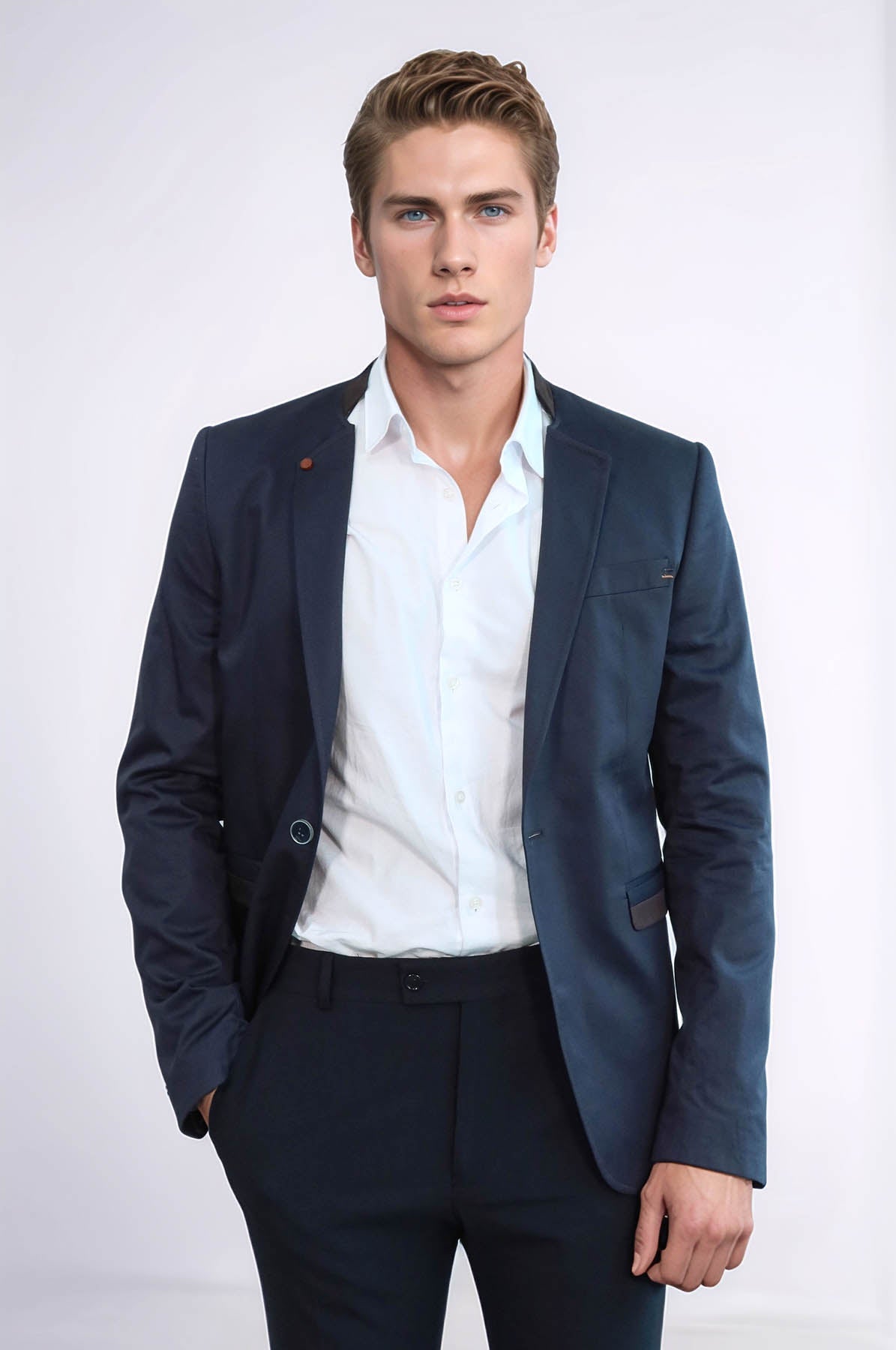 Introducing the Single Button Standing Collar Navy Blue Men Blazer from Wessi. Crafted with a sleek standing collar and single button closure, this blazer exudes sophistication and style. Made from quality materials, it offers comfort and durability for any occasion. Elevate your wardrobe with this timeless piece.