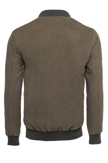 Men's bomber jackets stand out as one of the indispensable pieces of street fashion and urban style. Available in both solid colors and patterned models, these jackets adapt to any style and make you stand out. Khaki suede men's bomber jacket combines style and comfort for modern men. It offers a minimalist look with its khaki color and no pattern, while its flap button pockets and zipper closure offer practical solutions for your daily needs. This bomber jacket is the perfect choice for every season and every style. The suede material makes the jacket stand out with its texture, while the quality construction ensures long-lasting wear. Pair it with a white t-shirt and black slim fit jeans when out on the town or meeting friends. Pair it with black sneakers for a modern and stylish look. Complete your look with minimal accessories and emphasize your style every day. This jacket is perfect for both work and everyday activities.