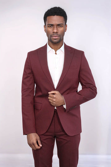 WSS Single Buttons 2 Piece Burgundy Men Suit - Dover