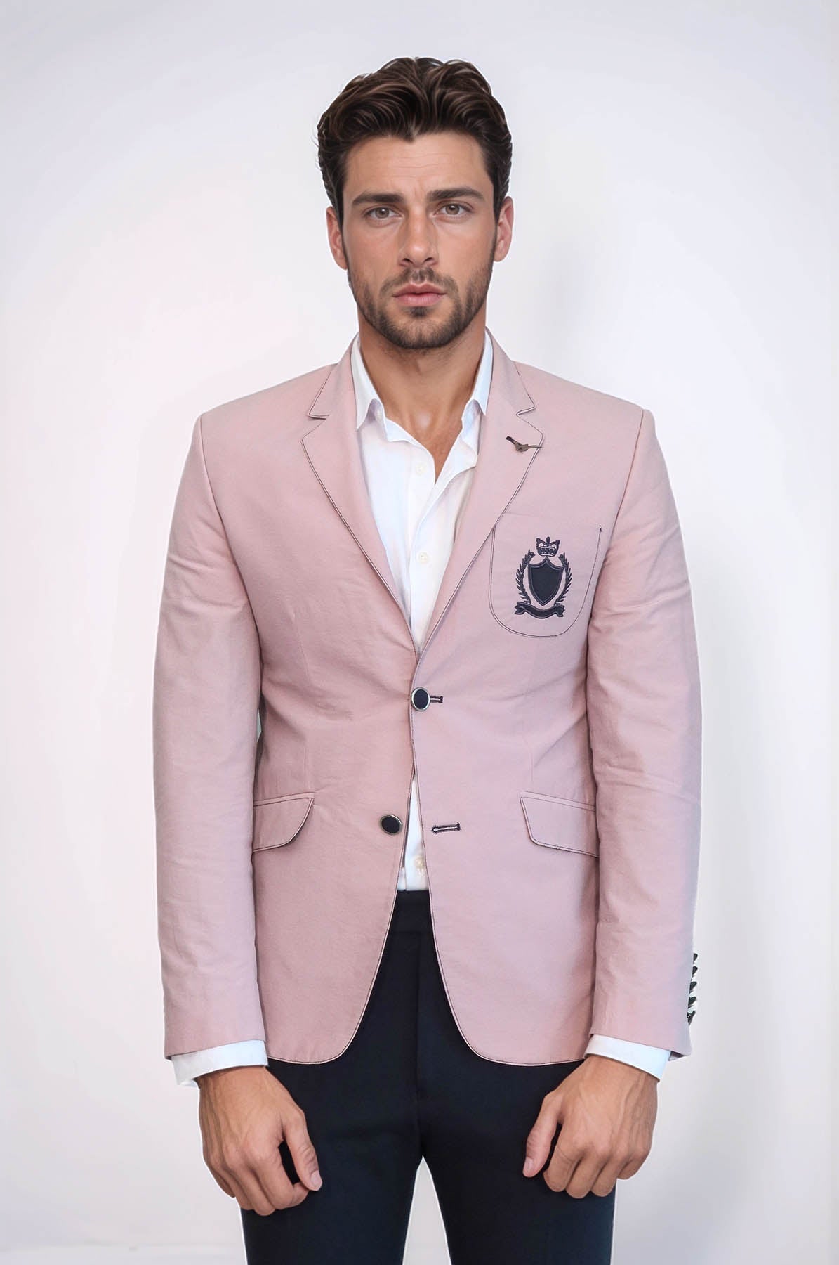 Expertly crafted with high-quality cotton, this beige jacket features 2 buttons and 3 pockets, perfect for keeping your essentials close at hand. The crest adds a touch of elegance and style to your ensemble. Stay comfortable and fashionable with this versatile jacket.