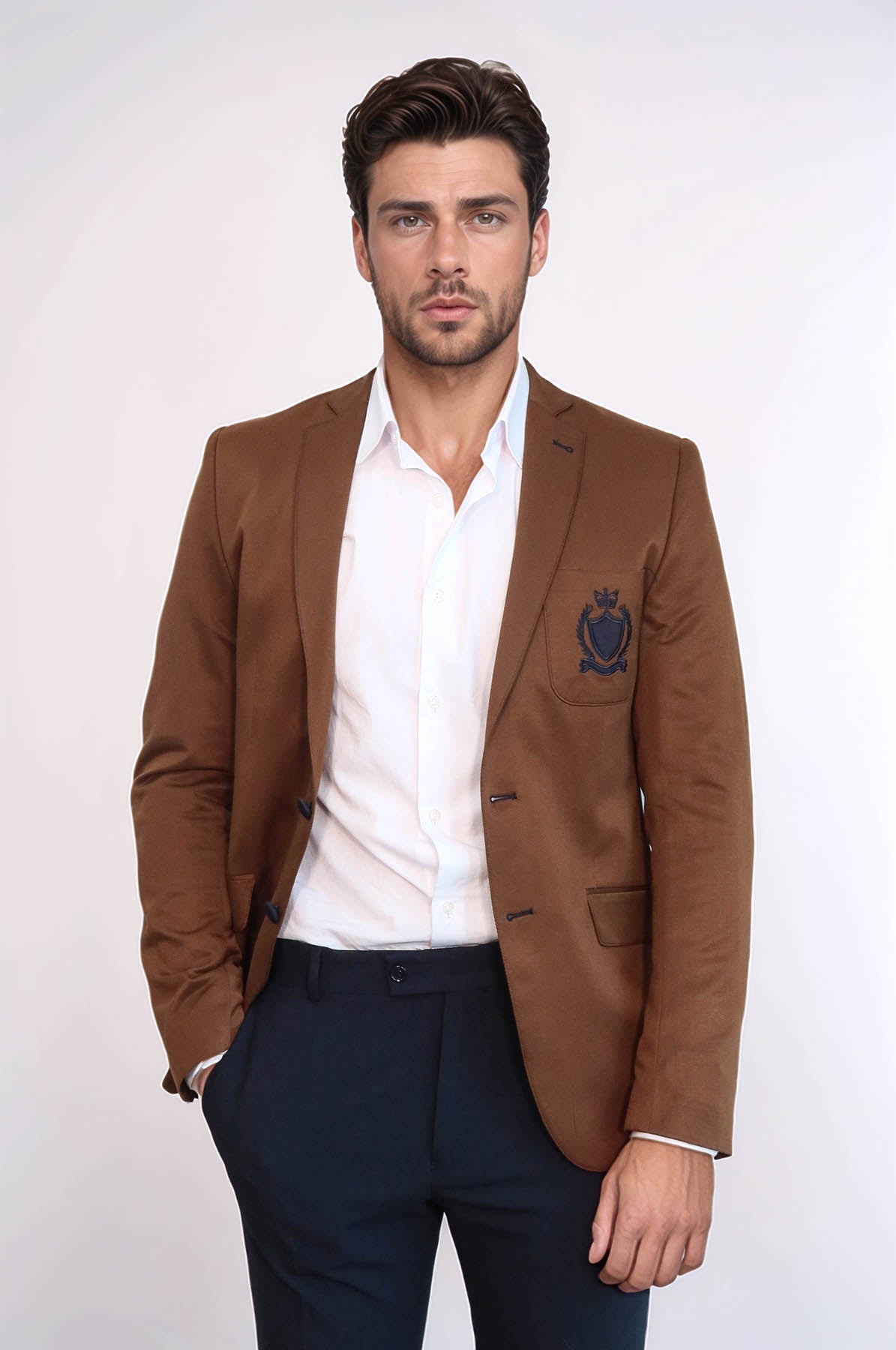WSS 2 Buttons 3 Pockets Crested Cotton Tan Jacket - Kaarst