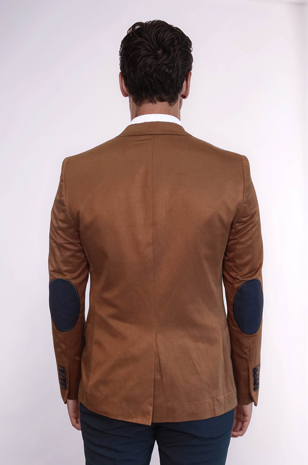 Details: Elbows patched, notch lapel, 2 buttons