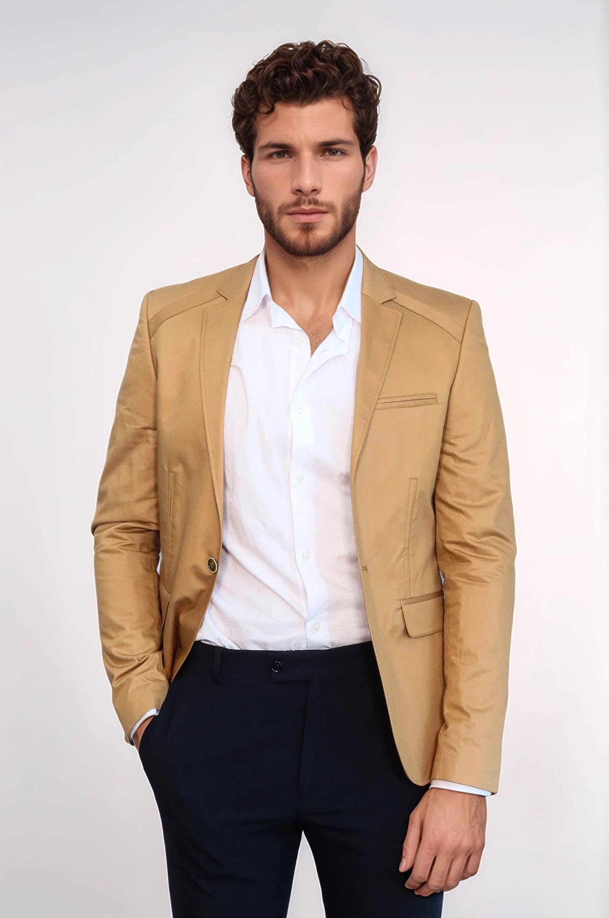 Expertly crafted from high-quality cotton, this Tan jacket by Wessi features 3 pockets and a single button design for a sleek and functional look. The soft, breathable fabric ensures comfort while the stylish design adds a touch of sophistication to any outfit. Perfect for any occasion.