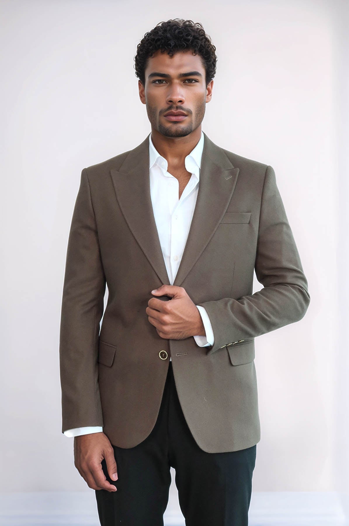 Are you looking to upgrade your evening look? Look no further than a men's sport coat. A slim fit peak lapel plain brown men’s sport coat is the perfect outfit for any sophisticated occasion. Not only does it add a touch of class and style to your wardrobe, but it can also be dressed up or down depending on the event. This timeless piece may be just what you need to stand out from the crowd. Not only will you look stylish, but this classic piece will also keep you warm on those chilly evenings too! The best part is that this versatile item can easily transition from an evening affair to a casual weekend outing with friends. With its neutral color and simple design, everything else in your wardrobe will pair perfectly with it!